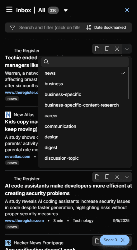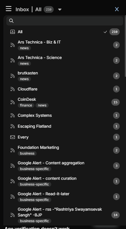 For example the source selection in the inbox. It now lets you search for sources, shows if it's an rss or email source, shows tags, and makes the count much easier to interpret.
