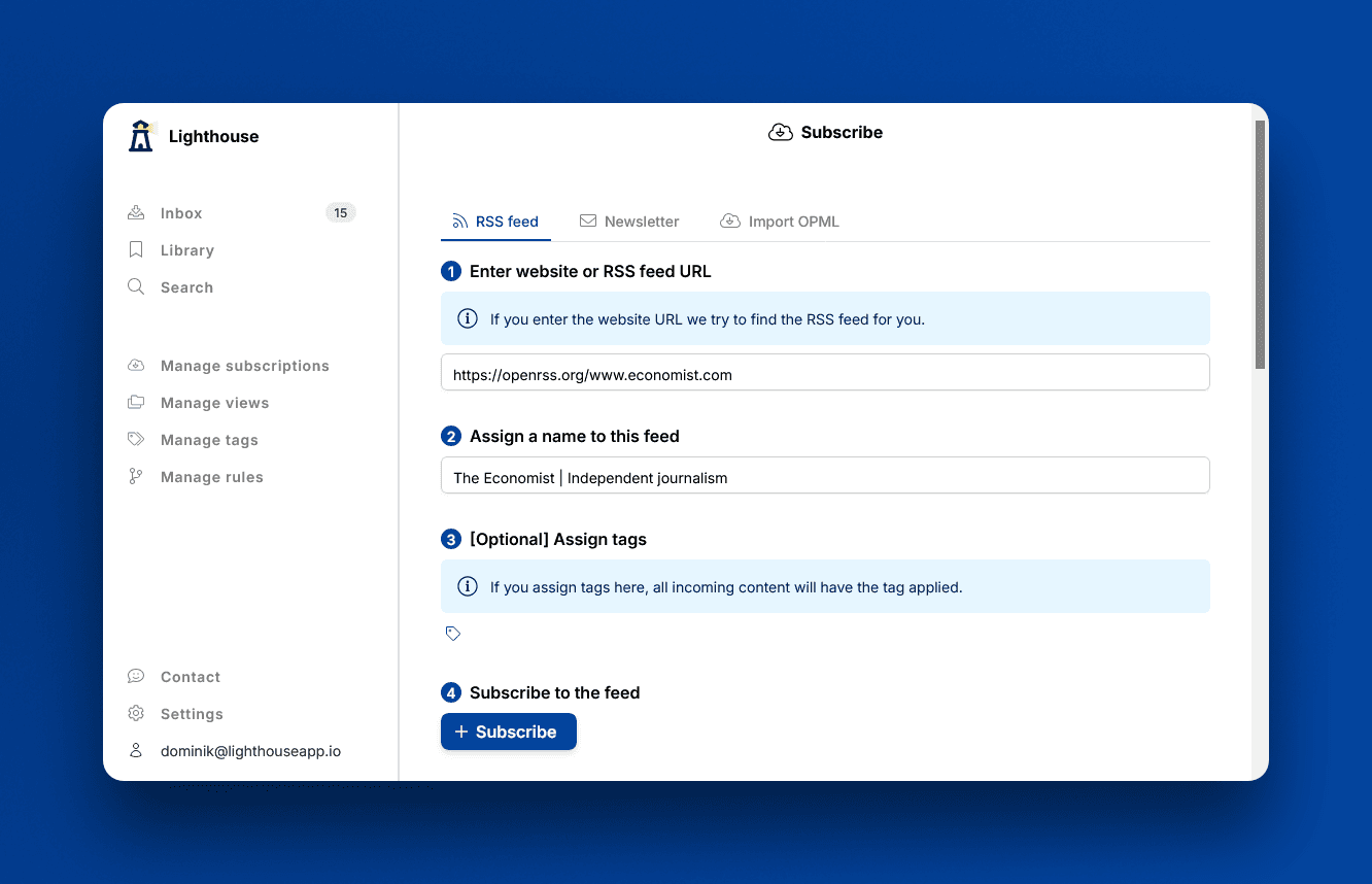 Lighthouse now has a more advanced algorithm to find feeds. It checks multiple pages of the website, the sitemap, and much more. Even 3rd party RSS feeds are part of it.